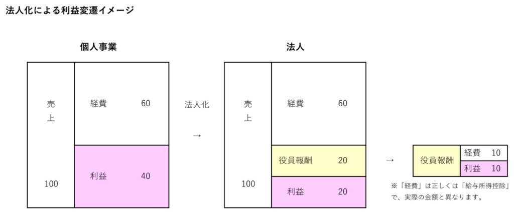 (1) 個人と法人で所得分散医療法人設立後、その法人と院長個人は別の人格になり、法人は院長個人(法人での役職は一般的に「理事長」)に対して給料を払うことになります。医療法人にとってその給料は経費になります(院長個人側では給与所得となります)。これにより、個人事業では院長個人に集中した利益(≒課税所得)を、院長個人と法人とに分散することができます。結果として、利益のうち(特に)高い税率が適用される部分が軽減され、それが法人側に移転することになり、個人+法人トータルの税金をより低い水準に抑えることができます。